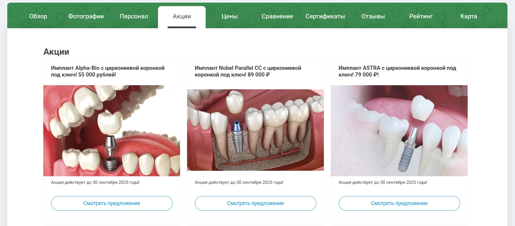 Все продвигаемые медицинские центры могут бесплатно размещать объявления на своих собственных страницах без ограничений.